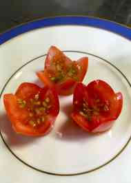 ミニトマトの飾り切り お料理を美味しく見せるコツ L 静岡県浜松市 料理教室キッチンスタジオ 楽しい各国家庭料理の味と食材の効能を生かした薬膳 Yakuzen を食卓に
